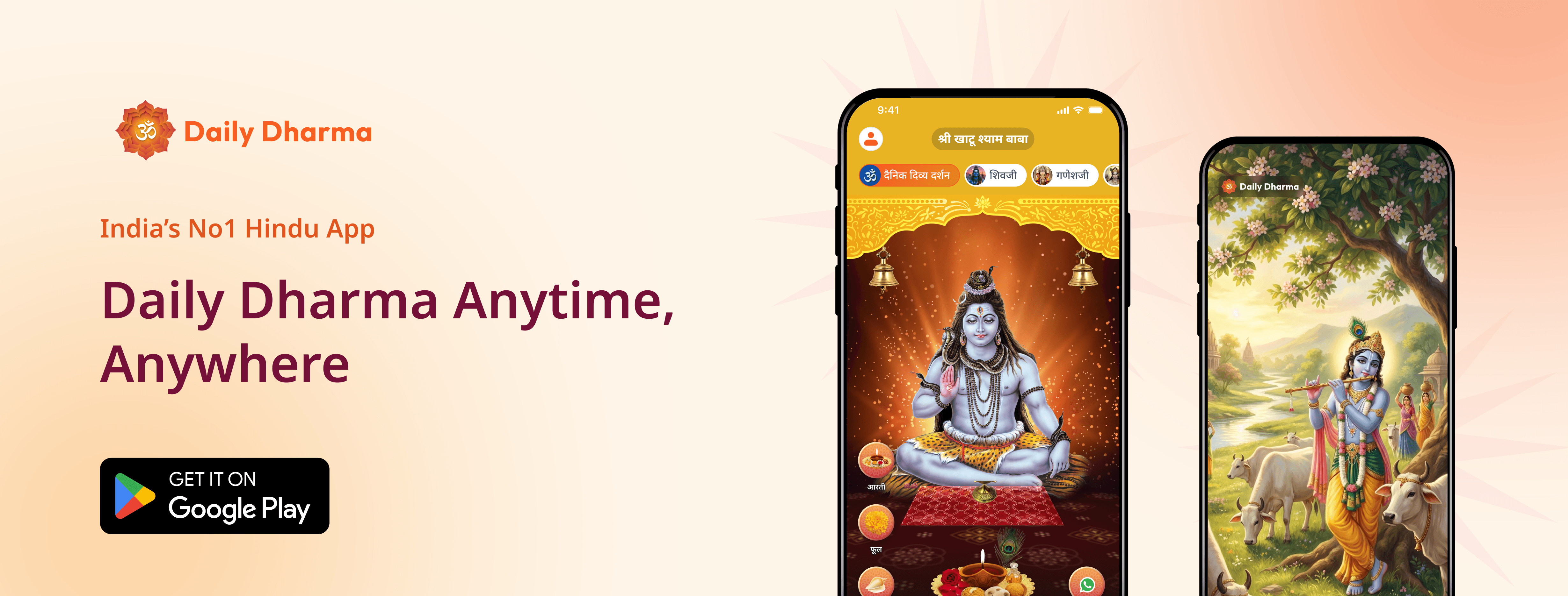 Whether you seek daily darshan, wish to change wallpaper or share status, or simply need a moment of spiritual peace, the Daily Dharma App helps you stay connected with divine blessings—whenever you need faith, strength, or reassurance.